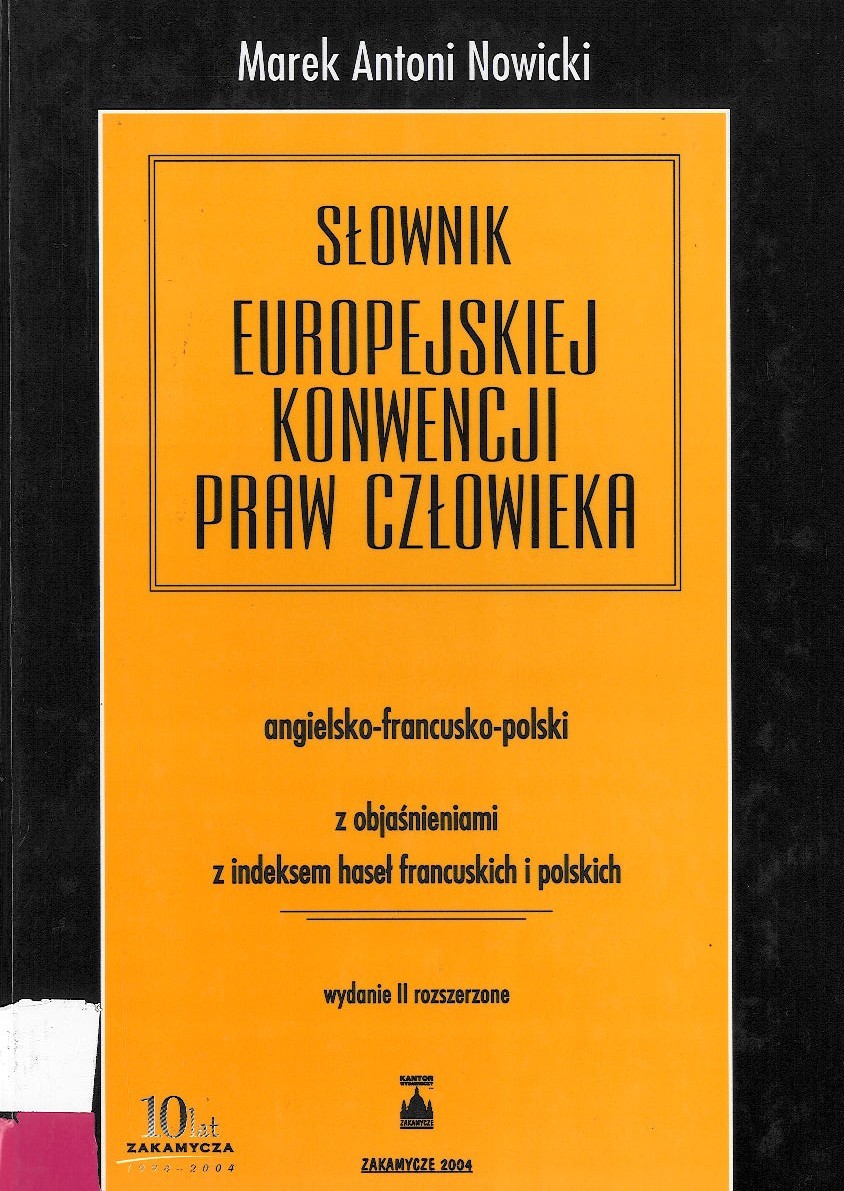 Słownik Europejskiej Konwencji Praw Człowieka : angielsko-francusko-polski, z objaśnieniami, z indeksem haseł francuskich i polskich /