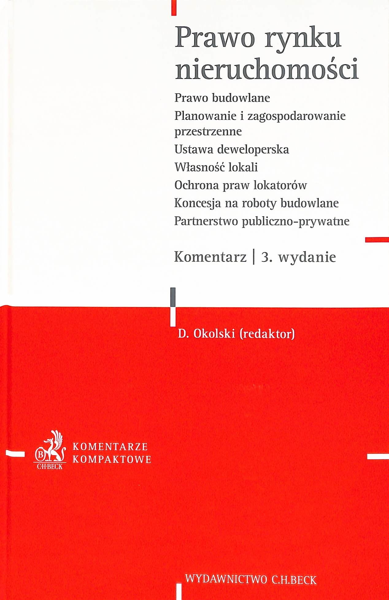 Na okładce: prawo budowlane, planowanie i zagospodarowanie przestrzenne, ustawa deweloperska, własność lokali, ochrona praw lokatorów, koncesja na roboty budowlane, partnerstwo publiczno-prywatne.