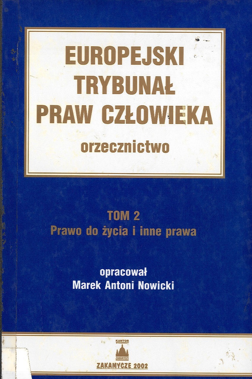 Europejski Trybunał Praw Człowieka : orzecznictwo. T. 2, Prawo do życia i inne prawa /