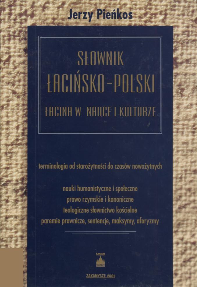 Słownik łacińsko-polski : łacina w nauce i kulturze : terminologia od starożytności do czasów nowożytnych : nauki humanistyczne i społeczne : prawo rzymskie i kanoniczne : teologiczne słownictwo kościelne : paremie prawnicze, sentencje, maksymy, aforyzmy /